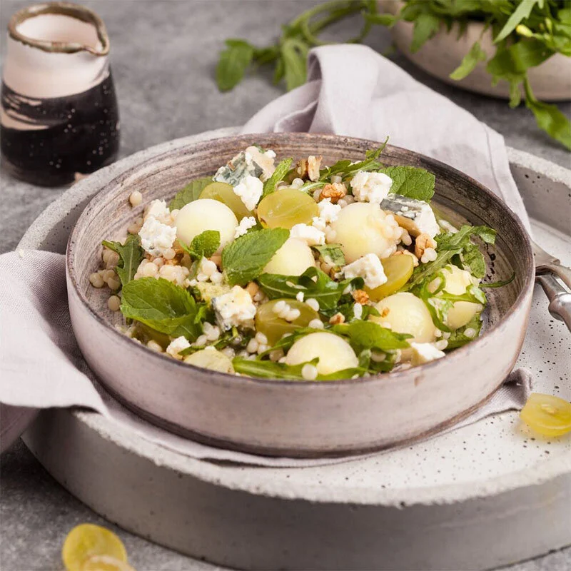 Combine couscous, walnuts, baby bocconcini, and grapes.