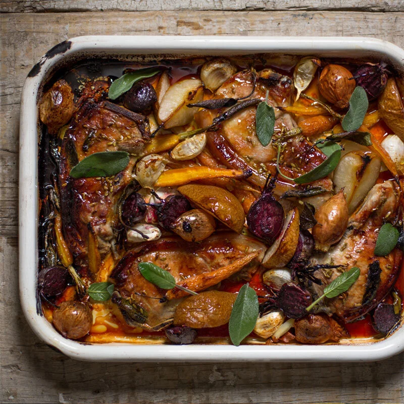 A great way to use up any left over produce. Throw all your ingredients onto a tray and bake, dinner is served!